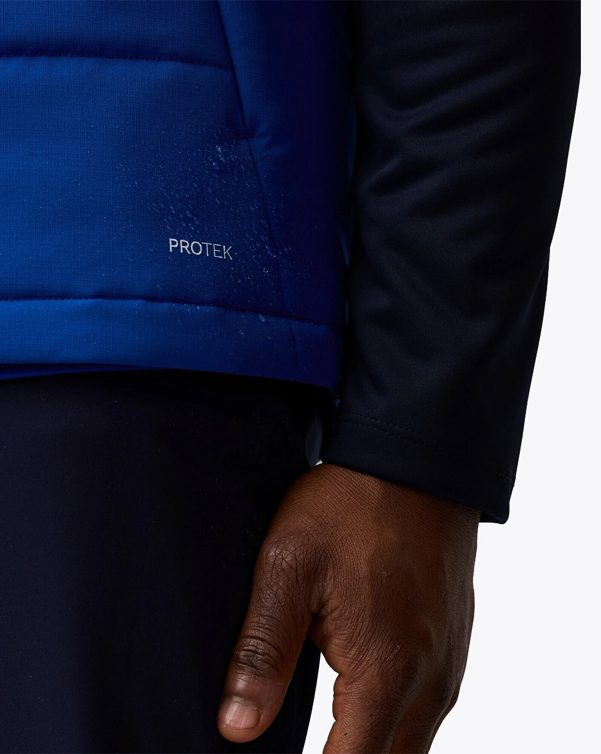 Oficjalna kamizelka Oracle Red Bull Racing od Castore pochodzi z najnowszej kolekcji zespołu na sezon 2026. Zaprojektowana na zmienne warunki, łączy wygodę noszenia z dodatkową ochroną przed chłodem i wilgocią. Technologia ProTek zapewnia hydrofobowe wykończenie, które pomaga chronić przed deszczem, a trwała konstrukcja z membraną TPU zwiększa odporność i elastyczność materiału. Całość uzupełnia nowa kolorystyka oraz oficjalne logotypy zespołu i partnerów.