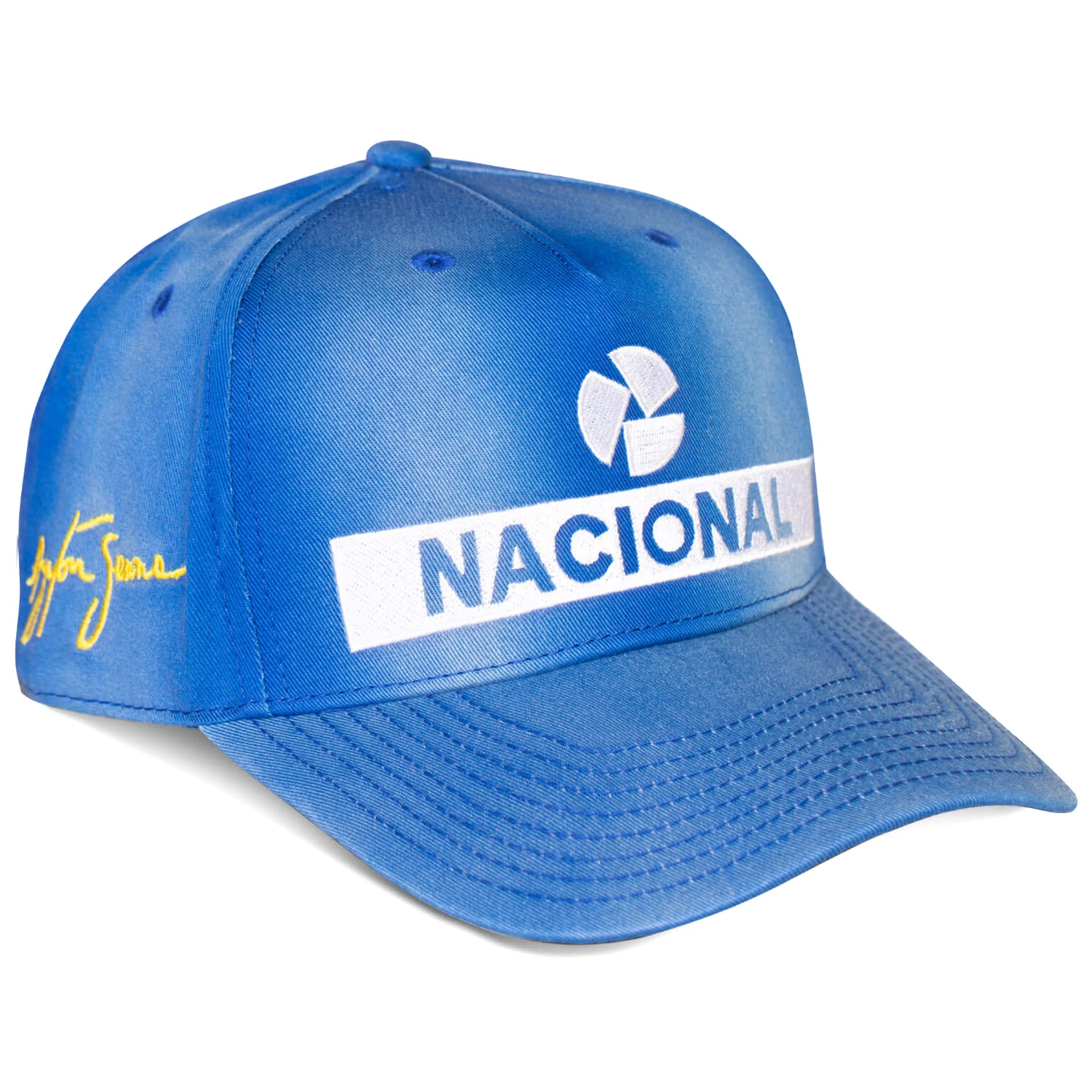 Czapka Senna Nacional Vintage Washed to replika kultowej niebieskiej czapki Ayrtona Senny, inspirowana jego najbardziej rozpoznawalnym stylem z toru. Wykończenie vintage washed nadaje materiałowi lekko sprany, „wypłowiały” efekt i sprawia, że czapka wygląda jak klasyk z lat 80., od razu gotowy do noszenia.